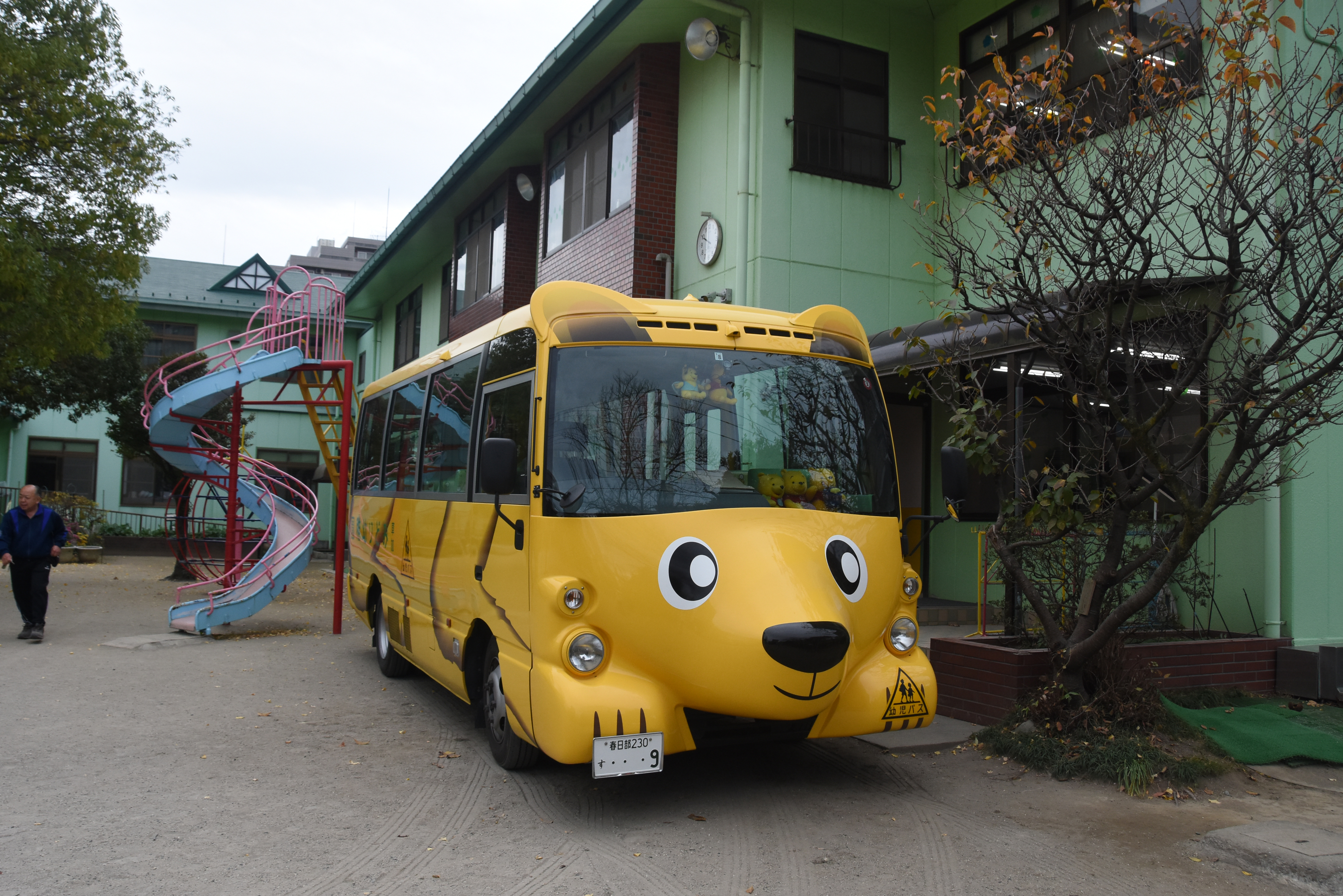② くまバス(幼稚園バス)にはGPS(位置情報システム)を設置し、保護者の方々のアプリで運行中のバスの位置を確認することができ、バス停での待ち時間が短縮されました。バス置き去り防止システムも令和5年度4月中に設置予定です。